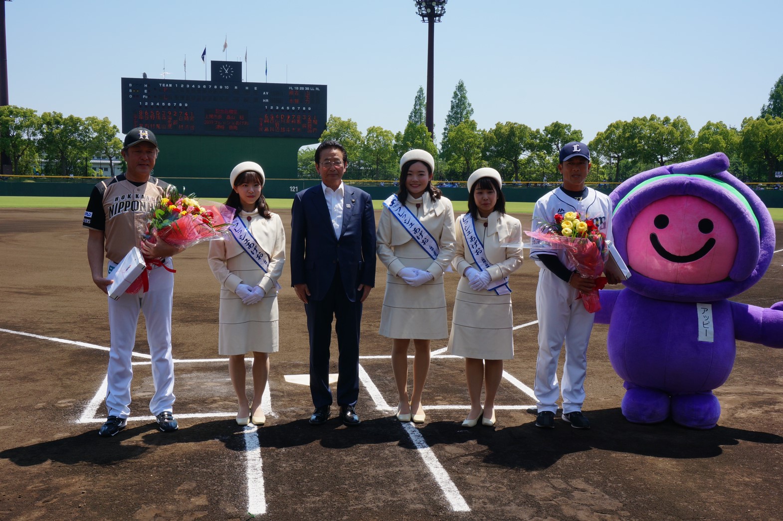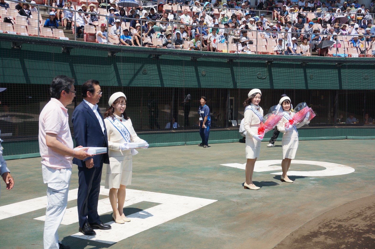 初めてグラウンドに立たせていただいたので、とても緊張してしまいました。しかし畠山市長が優しく励ましてくださり、一緒に記念品贈呈ができてとても貴重な思い出になりました。