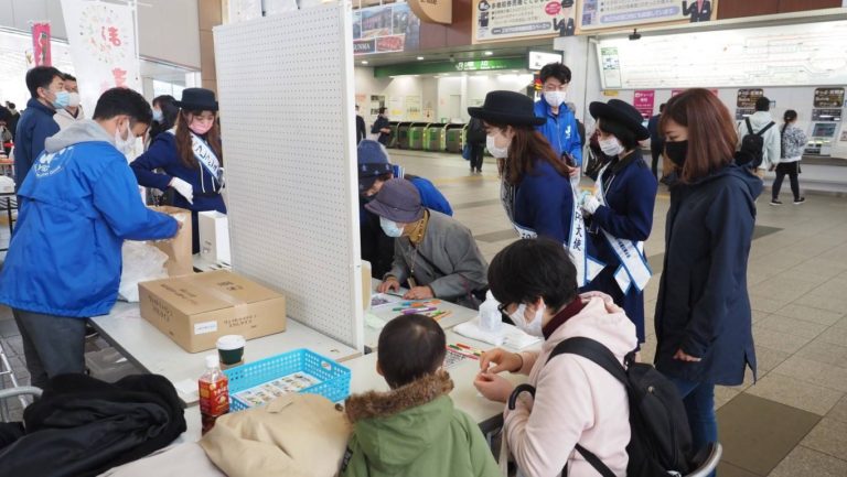 上尾市観光協会さん主催するテイクアウトフェアの中で、新型コロナウィルスの影響を受けている医療従事者の方や、飲食店を営む方々に向けた「明日への希望の木 応援メッセージ」を、上尾駅で皆さんに募る活動をしました。