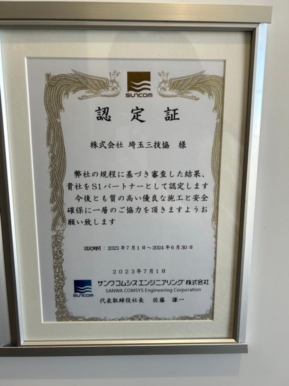 工事件数や、安全に仕事ができた功績の多い企業に与えられる、S1パートナーにも認定されています✨