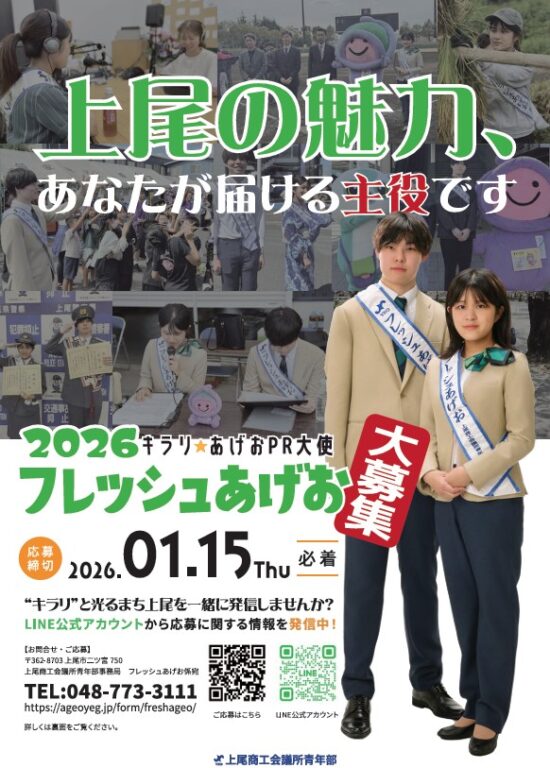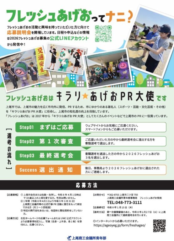 2026年4月1日~2027年3月31日の1年間、「フレッシュあげお」として活動してみませんか?!